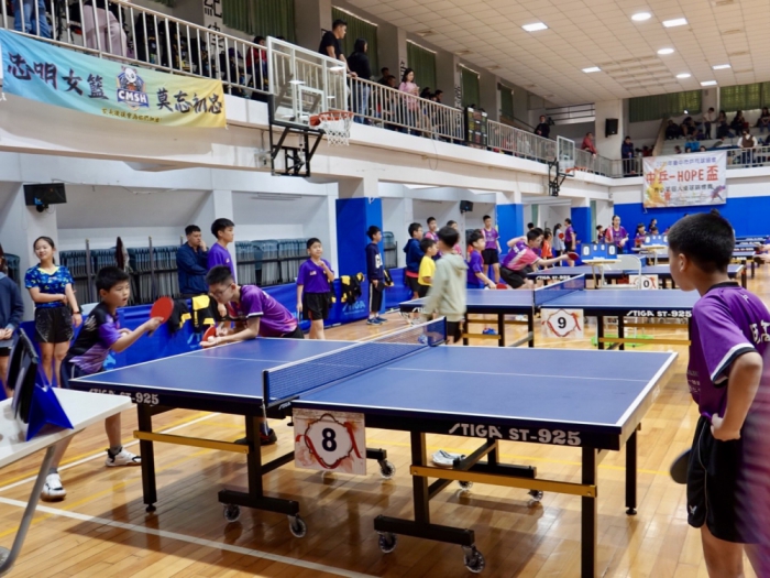 「中兵-HOPE盃」青少年個人組桌球錦標賽賽事,市議員賴順仁、運動局副局長謝明儒、教育局體健科長尤敦正、台中市立忠明高級中學校長鄭東昇、台中市乒乓球協會理事長鄭裕篤、馬來西亞金寶國會議員張哲敏及馬來西亞拿督李國山等均到場支持,為選手加油打氣。