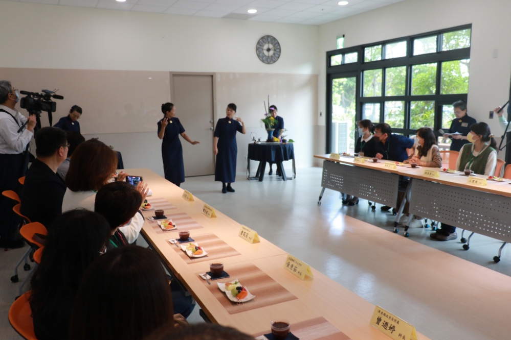臺北市政府衛生局長期照顧管理中心執行秘書李奕儒在二樓住房區體驗長輩音樂課程。李奕儒表示,機構四周環境很清幽,建築採光通風也很好,帶領長輩活動的工作人員都有笑容且有熱忱,相信長輩在機構能過得很開心。來自離島的連江縣衛生局高齡暨長照科科長陳月欽指出,仁愛長照是不像機構的機構,整體氛圍非常舒適宜人,目前連江縣也正在籌備長照相關計畫,期望未來有機會能和慈濟合作。