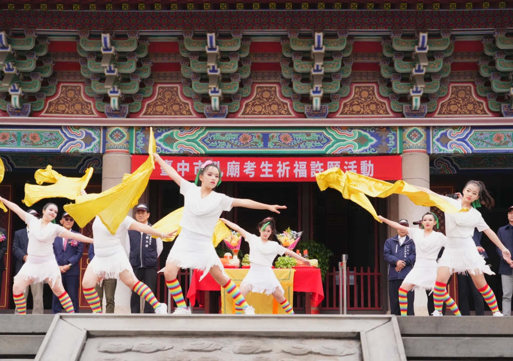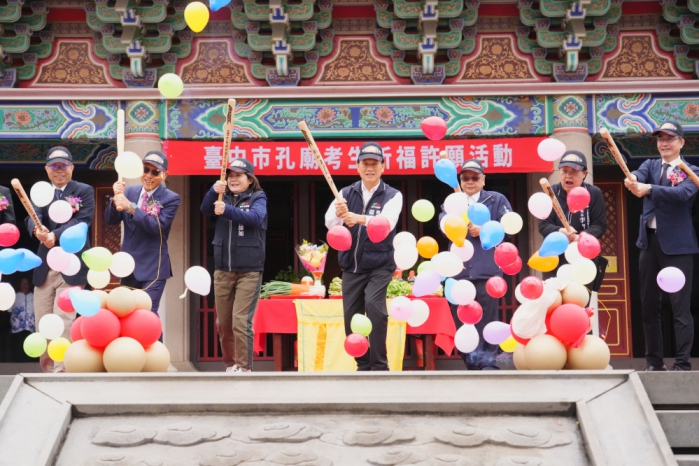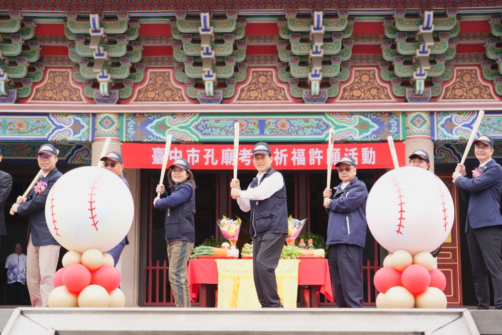 臺中市孔廟忠烈祠聯合管理所所長李書提到,今年祈福儀式除結合祭孔經典儀程,祈祝至聖先師庇佑應試者考運順遂,活動更融合台灣棒球精神,以「擊出全壘打」、「投出好球」等儀式象徵考生在考場上全力以赴、突破自我,盼透過這樣充滿祝福與鼓勵的儀式,讓考生以最好的狀態迎戰人生重要一役,最終都能考運大發、一舉高中。