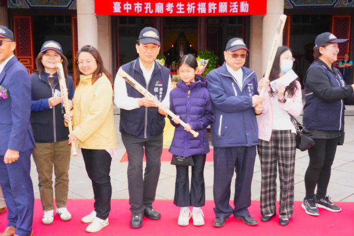 民政局長吳世瑋指出,每逢重大考試時,考生都會前往文昌廟或孔廟參拜祈福,祈求考運亨通、一舉高中。歷史悠久的台中市孔廟,更是不少考生考前選擇祈求考試順遂的熱門廟宇,孔廟每年也都會舉辦祈福活動,服務將參加應試的考生、學生及民眾,今年活動報名情形十分踴躍,限額600名,不到2天報名全數額滿,期盼所有考生都能得到至聖先師孔子的庇蔭加持,預祝大家心想事成、學業順利。