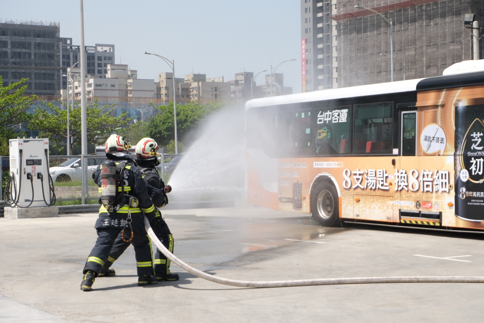這場消防演練在台中客運梧棲停車場舉行,情境模擬主題為「電動公車在充電時,出現不明原因的冒煙起火時,如何在短時間內搶救?」消防局指出,因應電動車內部鋰電池具燃燒不易撲滅及因熱失控易復燃的特性,且搶救上相較於油車更為棘手,在預防及搶救過程更不容忽視,災害發生初期,指揮官立即針對災害模擬下達任務指派,實況演練災害發生時搶救的戰術佈署及處置能力。