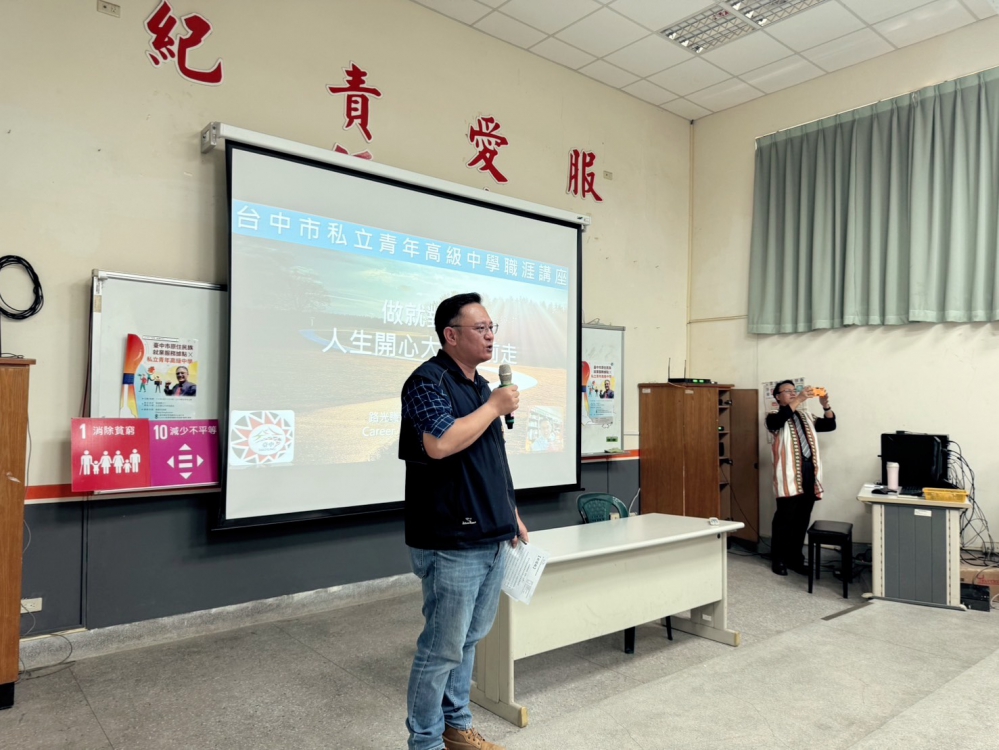 【記者林獻元台中報導】協助原住民族學生提早掌握職涯方向,迎接未來職場挑戰,台中市政府原住民族事務委員會與台中市私立青年高級中學合作,17日舉辦「做就對了!人生開心大步向前走」職涯發展講座,並邀請路光職涯管理顧問中心執行長施路光,以案例及親身經驗分享如何運用關鍵能力,為自己打造職場競爭力。