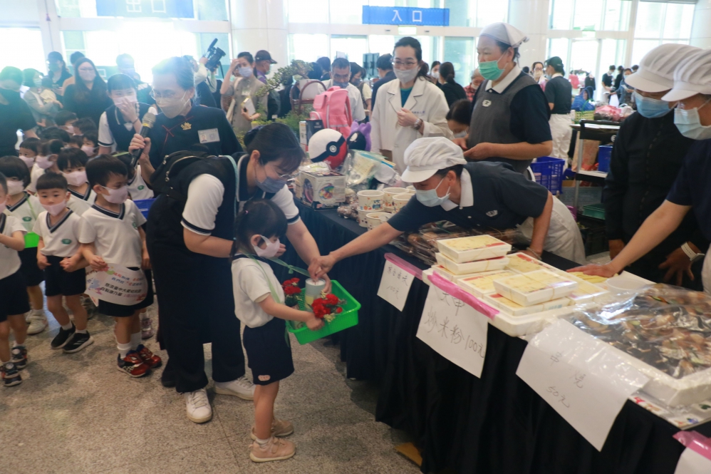 市集攤位展現創意與溫度,凝聚眾人善心。醫務部、研究部及教學部同仁主動向醫院長期關懷的照顧戶購買旦蕉來義賣,讓善心循環、愛不間斷。台中慈濟護理之家日照中心則由同仁帶領長輩手作水果茶,重拾參與社會的價值感。委託慈濟醫療財團法人經營的仁愛綜合長照機構的長輩親自顧攤,透過實際行動展現「老有所用」,讓更多人感受長輩的溫暖能量。