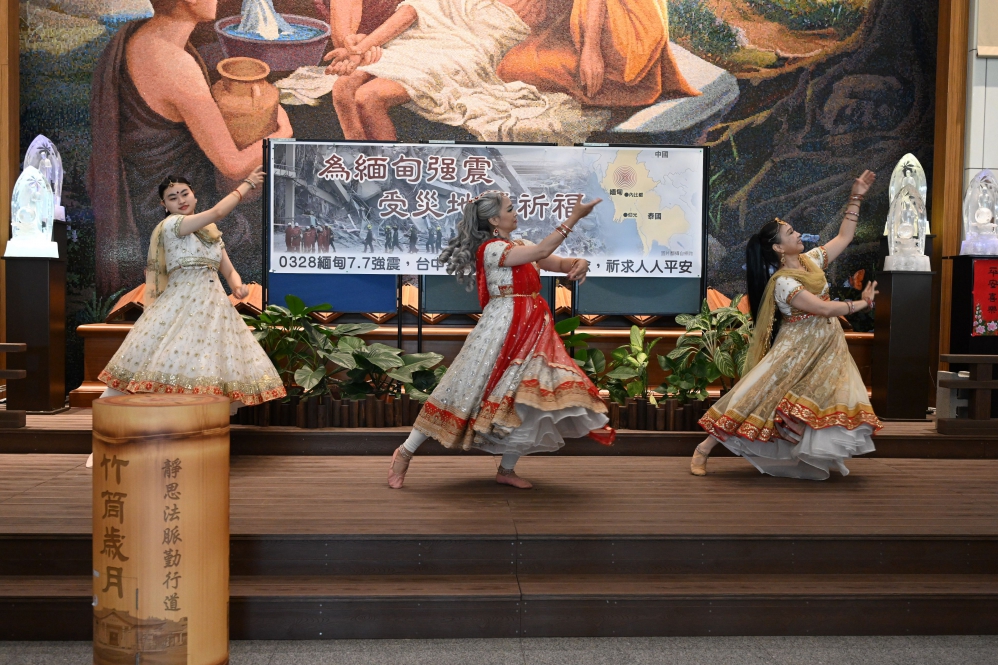 除了熱鬧市集還有傳遞祝福與希望的精彩演出,乳癌病友自組的「慈姝印度寶萊塢舞團」帶來活力十足的舞蹈,象徵希望的風箏隨舞飄揚,傳達對生命的熱愛與祝福。台中大愛幼兒園小班孩童透過手語演出,並齊聲高喊:「緬甸加油!泰國加油!我們把愛送給你!」童言童語溫暖人心,更將親手製作的康乃馨繞場義賣,小小身影可愛模樣吸引眾人搶購。