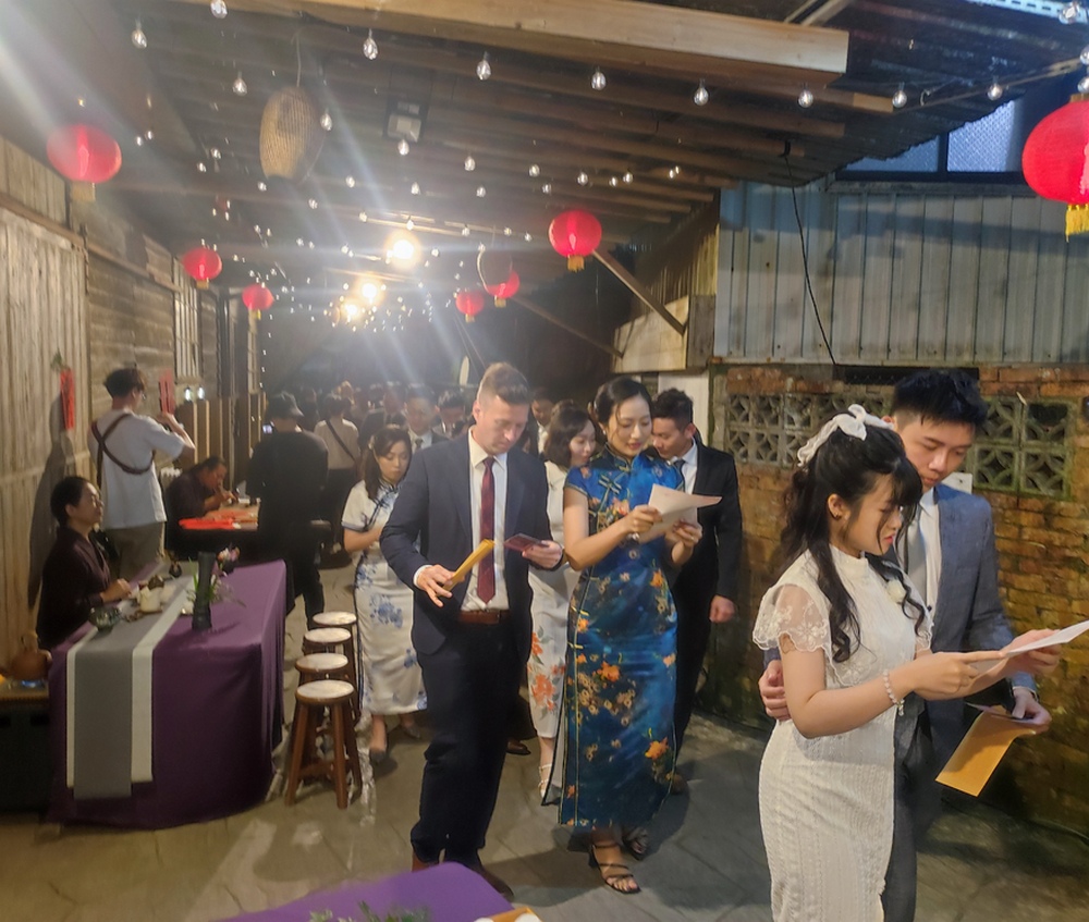 (記者任芳葵嘉義報導)交通部觀光署阿里山國家風景區管理處首次轉型「阿里山神木下婚禮貳部曲-星光下婚禮」,點亮打造奮起湖山城美景,辦理「旗遇山城‧夜幕風華」的阿里山星光婚旅,15 對來自國內外的戀人們獲選參加,其中4 對新人來自海外,為美國、馬來西亞及澳門籍,戀人們18日夜齊聚奮起湖老老街,主辦單位精心規畫古早浪漫場景,打造時光拾夢的沉浸體驗,新人穿著旗袍與帥氣禮服穿梭山城老街,在音樂演奏聲中翩翩起舞同歡。
