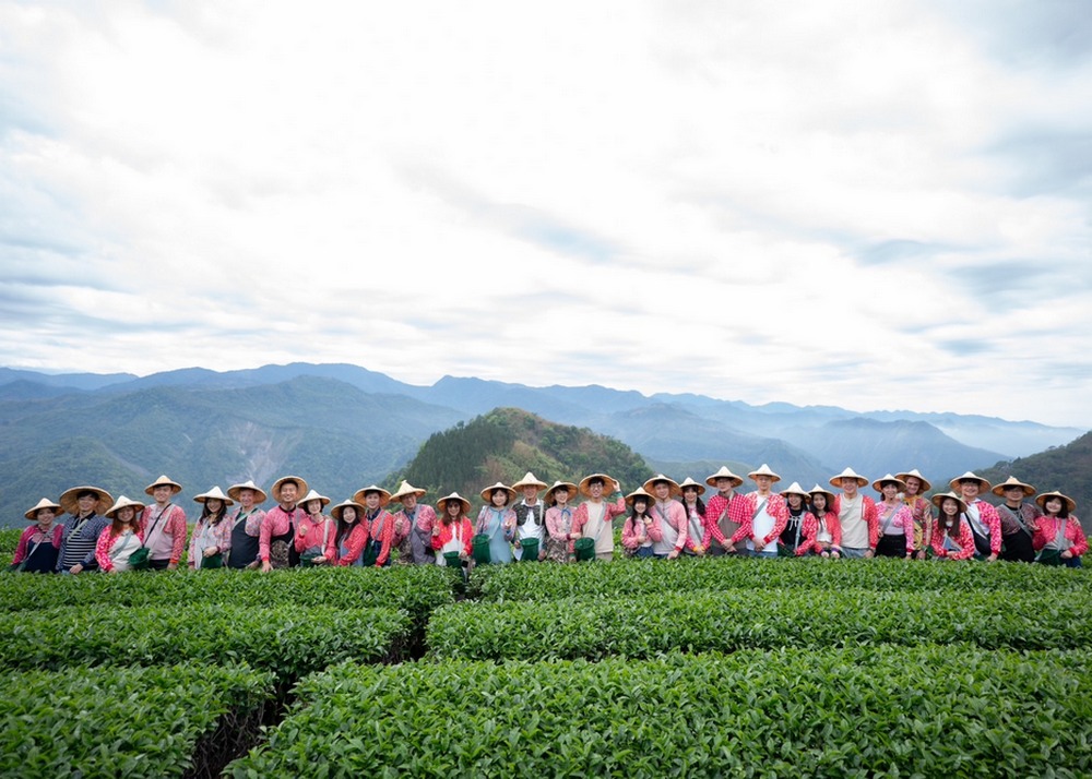 阿里山星光婚旅新人們採茶體驗大合照。(圖/阿里山國家風景區管理處提供)