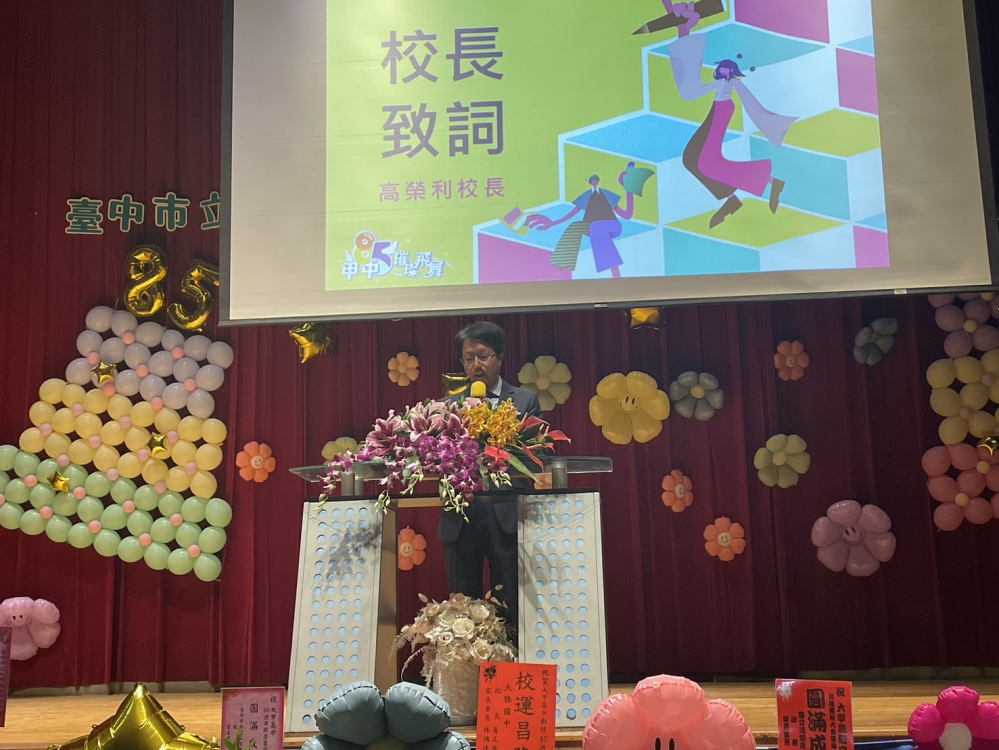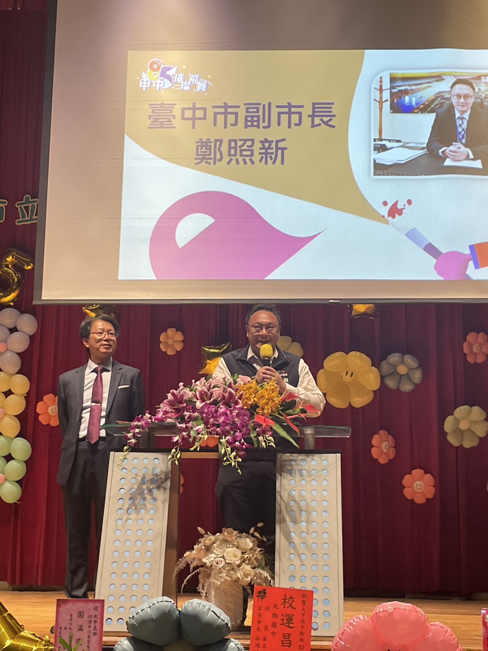 【記者陳榮昌大甲報導】台中市立大甲高級中等學校19日舉行85週年校慶慶祝大會,結合傑出校友表揚及愛心園遊會活動,現場氣氛熱絡、歡欣鼓舞。台中市副市長鄭照新出席向全校師生與傑出校友表達祝賀之意,並與市府教育局副局長賴緣如及校內外嘉賓共同慶祝這意義非凡的時刻。