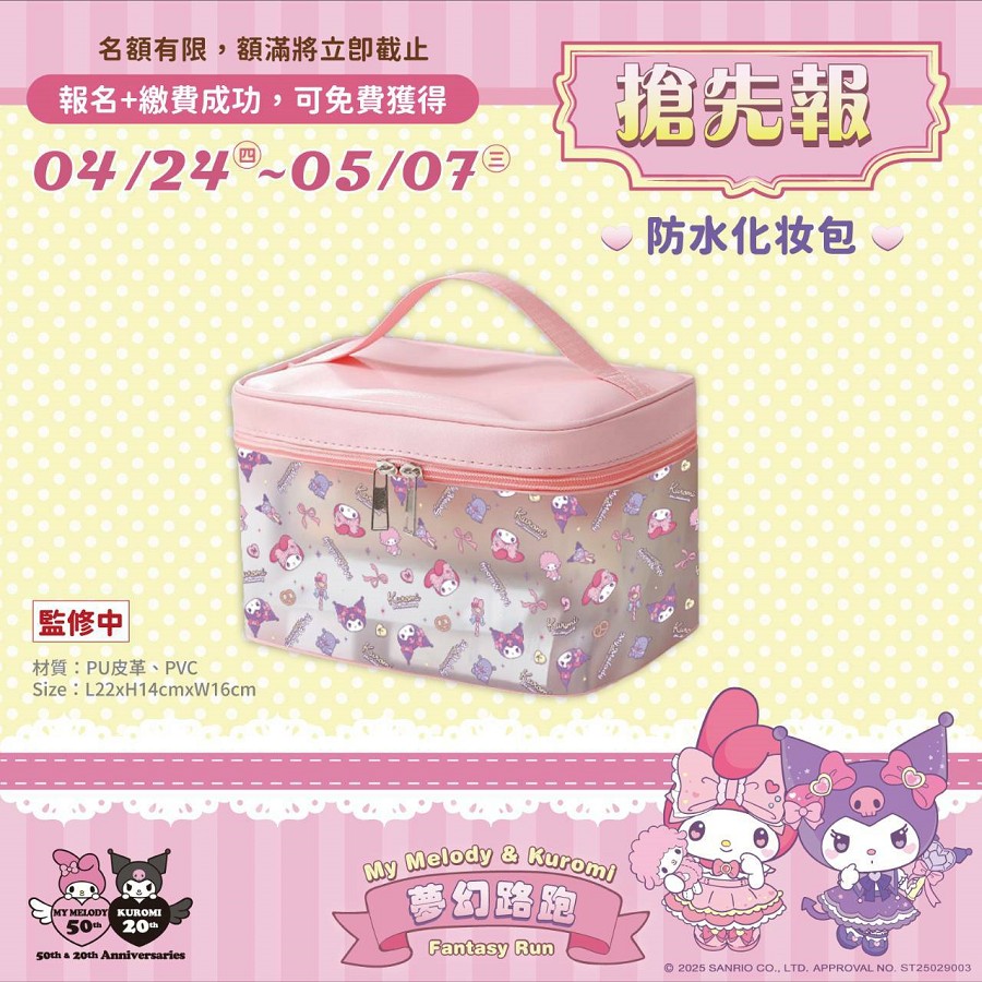 5/7(三)23:59前報名,就送限量「美樂蒂 & 酷洛米防水化妝包」!