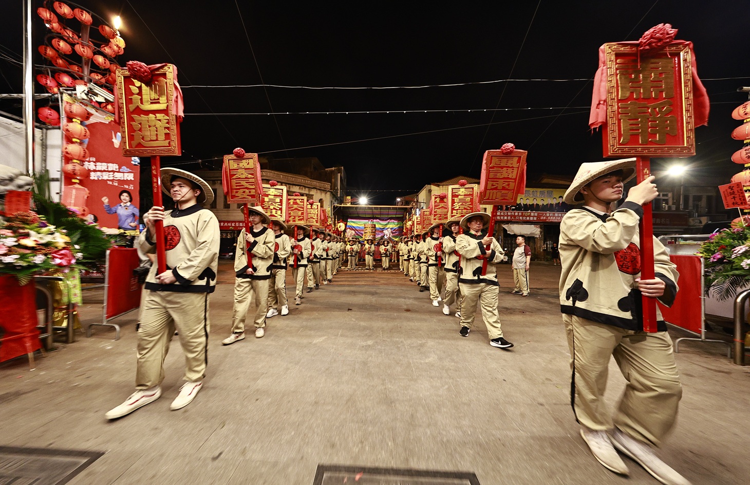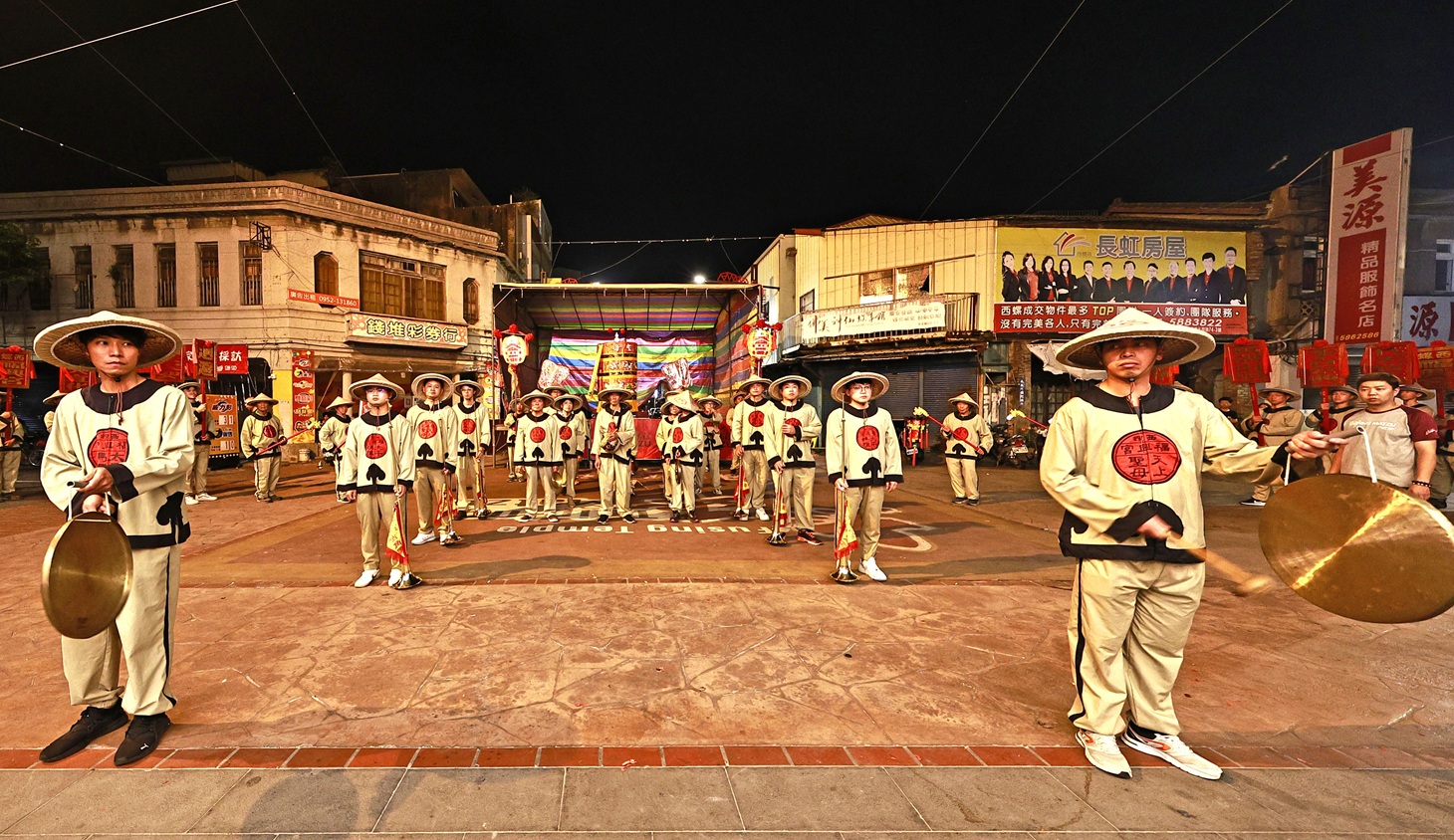 媽祖誕辰祈福典禮中,不乏豐富多元的藝文活動,包括傳統梨園戲酬神演出、西螺鳳山舘以宋江陣還願呈現武藝精神。(圖/記者蘇峯毅攝)