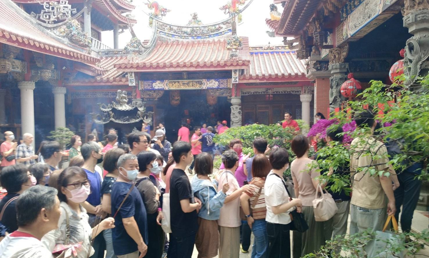 媽祖聖誕祝壽活動透過敬天禮神、社會各界齊心參與,傳遞著媽祖慈悲護眾的信仰精神,信眾絡繹不絕。(圖/記者蘇峯毅攝)