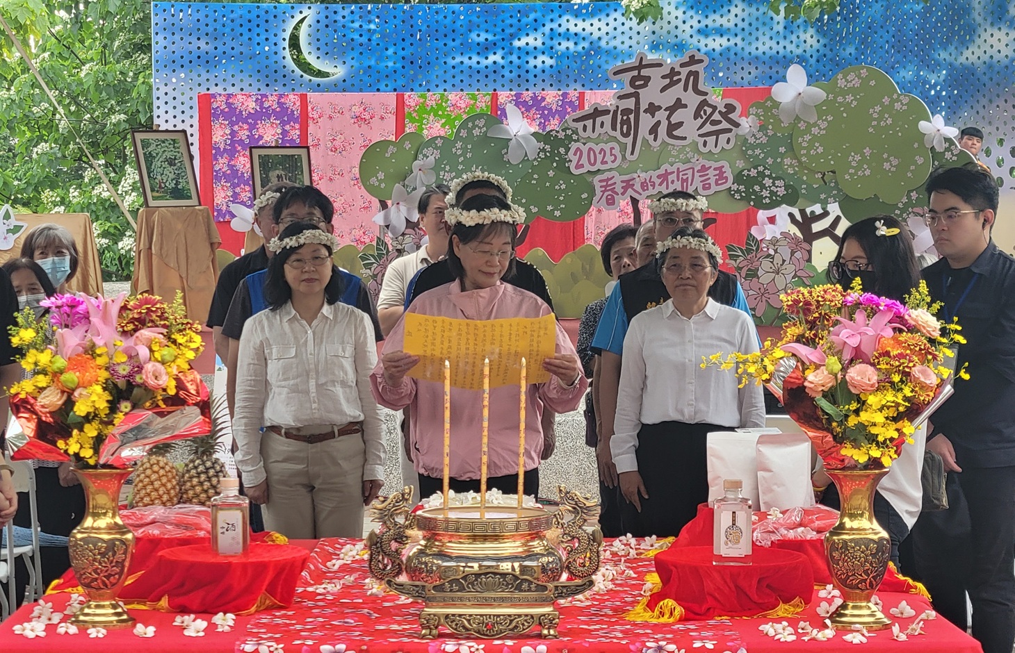 副縣長謝淑亞恭讀祝文並邀請全國民眾共賞四月雪、品味黑咖啡,深入體驗融合自然風光與客家文化的獨特魅力。(圖/記者蘇峯毅攝)
