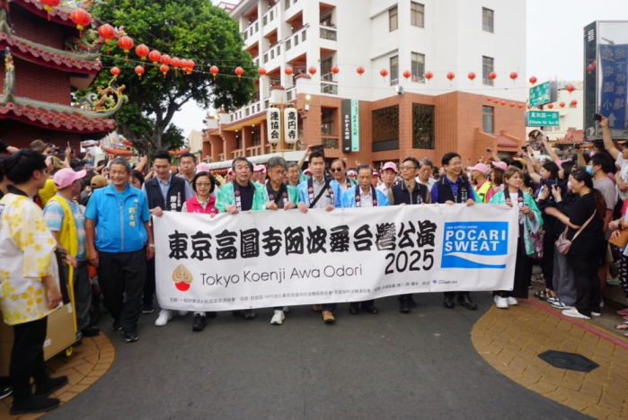 今天第一次台中市萬和宮,非常開心。今天是來台公演的最後一場,相信舞者會更賣力演出。他提到,高圓寺所在的杉並區位於東京西邊,沒有很多觀光客,但從68年前推出阿波舞,吸引很多人潮。