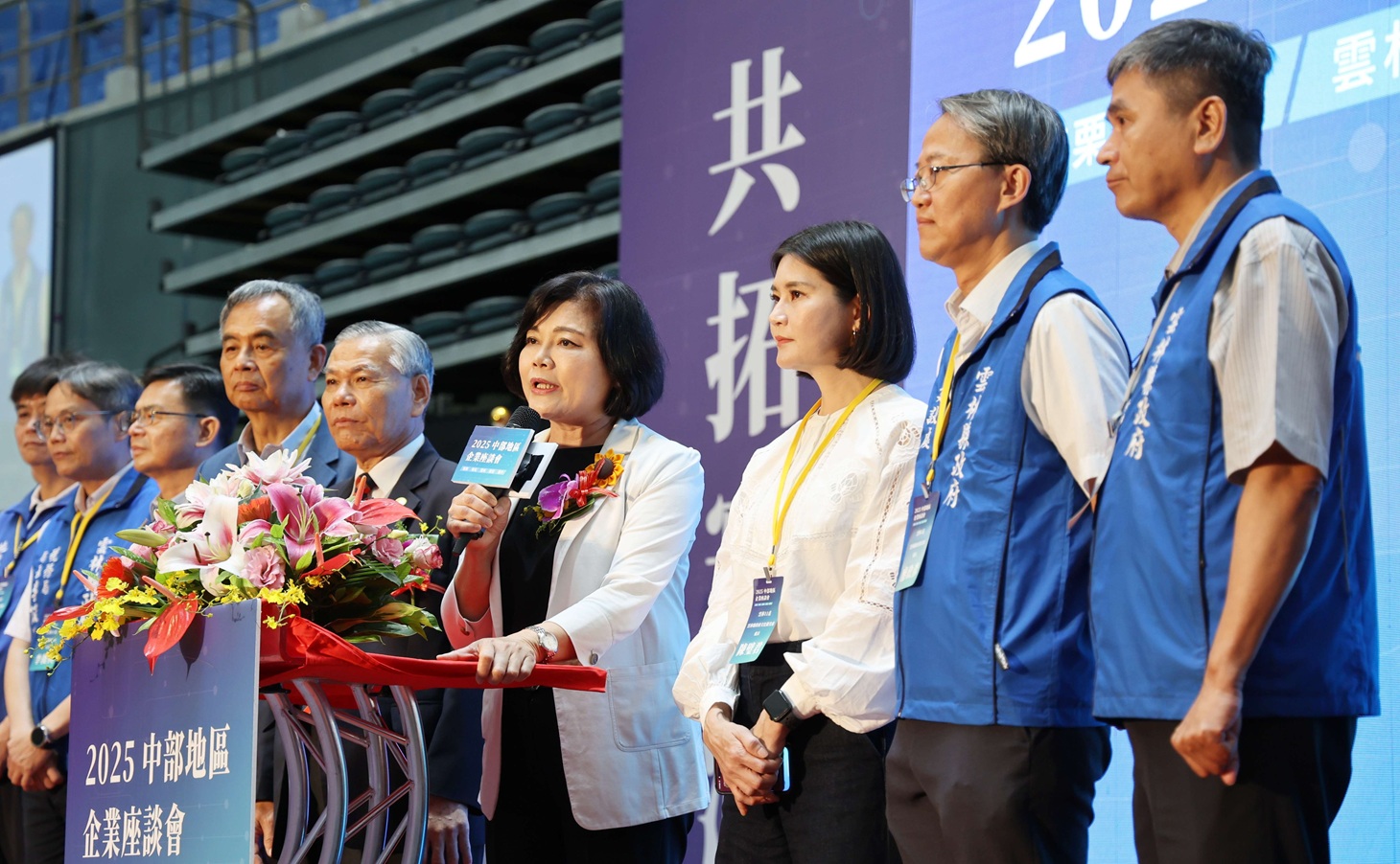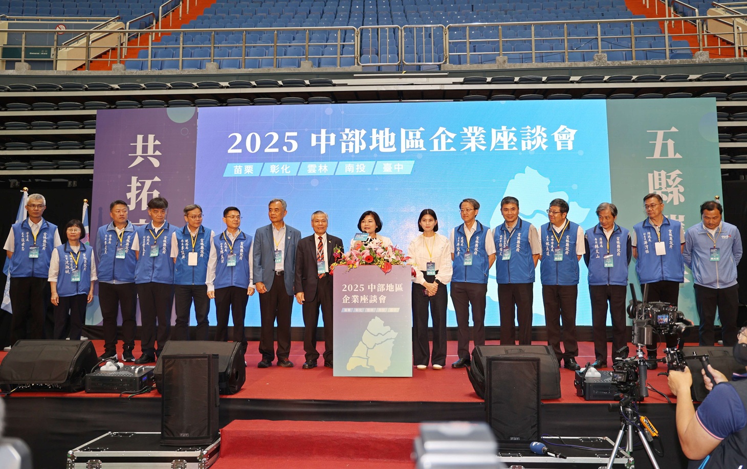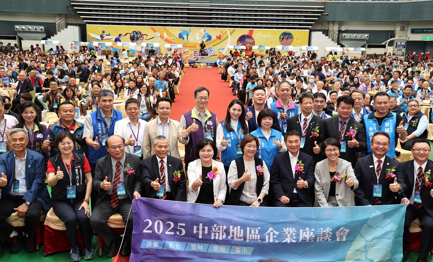 【記者蘇峯毅/雲林報導】2025中部地區企業座談會於4月23日在苗栗巨蛋體育館盛大登場,雲林縣長張麗善受邀出席,與台中市長盧秀燕、南投縣長許淑華、彰化縣長王惠美、苗栗縣長鐘東錦等中部八縣市首長,以及來自五縣市的上千位企業家、產業代表共聚一堂,共同面對當前國際關稅政策變動所帶來的挑戰,並為企業永續經營與地方發展尋求突破之道。