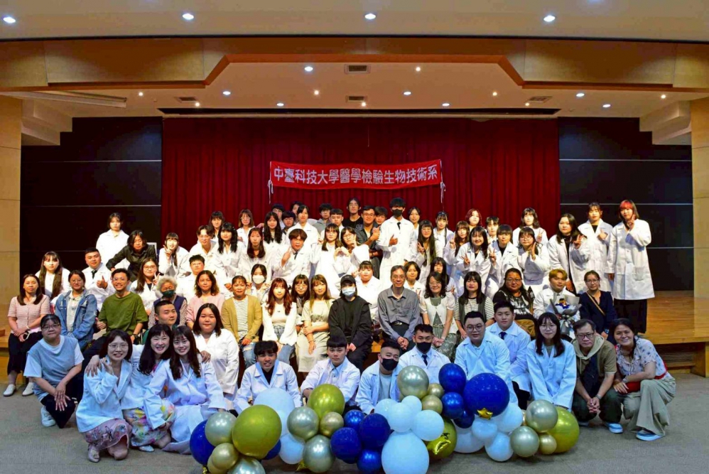 中臺科大醫檢系長期重視臨床技能與專業倫理的並重發展,透過授袍典禮,讓學生在邁入實習前,內化「白袍」所承載的使命與期許。儀式不僅是形式上的轉變,更是一種心境與角色的蛻變,象徵著從學習走向實踐,從校園走進醫療團隊。