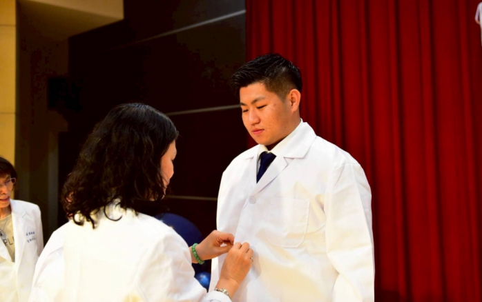 典禮特別邀請台中市醫事檢驗師公會第十八屆理事長暨中國醫藥大學附設醫院檢驗醫學部副主任蕭瓊子女士,以及台中榮民總醫院病理檢驗部一般檢驗科主任謝獻旭先生擔任授袍嘉賓,兩位業界前輩除親手為學生授袍外,也以自身經驗勉勵新生代醫檢人員勇敢踏出實習第一步。