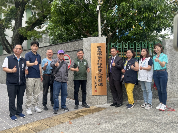 揭牌典禮由市議員李天生、在地藝術家黃圻文、校長葉聰信、家長會長楊顏菱、市政顧問陳又臻等人共同主持,學校師生、家長會委員、志工隊員到場參加,現場氣氣熱絡,揭牌後並由畢業校友黃圻文進行導讀解說。
