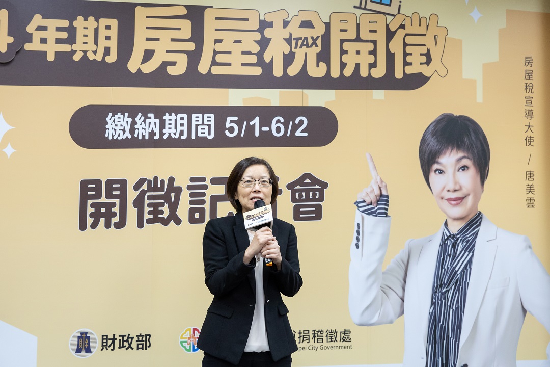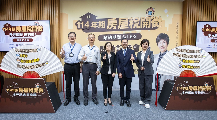 ▲114年期房屋稅繳納期間為5月1日起至6月2日,邀請唐美雲(右一)擔任宣導大使