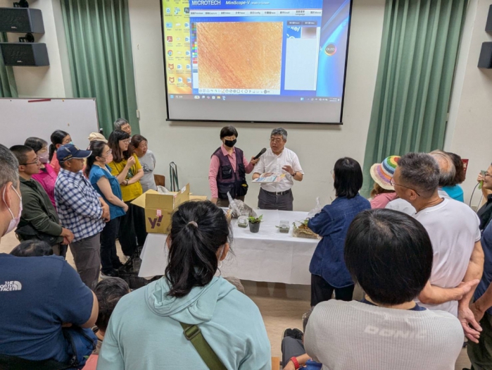 這次工作坊課程結合社區居民生活經驗,介紹原生蕨類生態,配合有性及無性繁殖實作技術教學,吸引了大雪山林業生產合作社、臺中市林業生產合作社、苗栗縣麻必浩部落發展協會、南勢社區、興隆里社區、大雪山社區等社區民眾報名參加。經過黃博士說明,蕨類植物不開花也不結果,以孢子來繁殖後代,課程中介紹蕨類孢子採集方式,更實際操作頂芽狗脊蕨的不定芽無形繁殖技巧,使初次接觸蕨類培育的社區人員樂在其中,原來在野外常見的蕨類是個寶,直呼是前所未有的體驗。