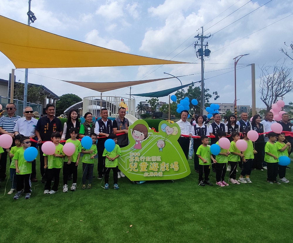 新港鄉嘉民行政園區兒童遊戲場30日正式啟用,總建置經費490萬元,分別由國土管理署補助315萬元、