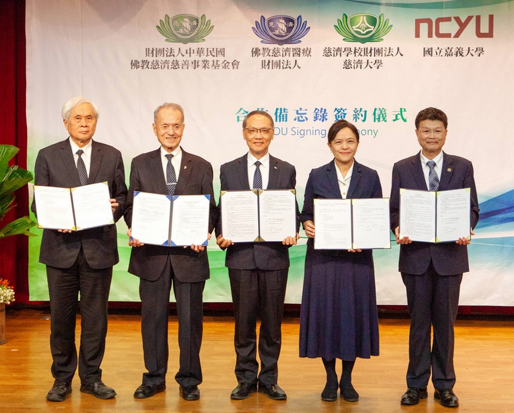 嘉大與慈濟大學、慈濟醫療財團法人及慈濟基金會簽署合作備忘錄合影。(由左至右教育志業王本榮執行長、慈濟醫療財團法人林俊龍執行長、慈濟基金會顏博文執行長、慈濟大學劉怡均校長及林翰謙校長)圖/慈濟大學提供慈濟體系在醫學教育、醫療服務、人文關懷與國際志工領域深耕多年。慈濟大學擁有全球首創的「模擬醫學人文課程」與「無語良師」制度,融合臨床技能與人文精神,吸引英美亞各地名校參訪交流,並曾獲《華爾街日報》專文報導。慈濟基金會長期推動SDGs、弱勢扶助、防災教育與志工培育,為臺灣社會公益實踐樹立典範;慈濟醫療體系則秉持「慈悲喜捨」理念,透過人本醫療服務為臺灣醫界注入溫暖與創新。