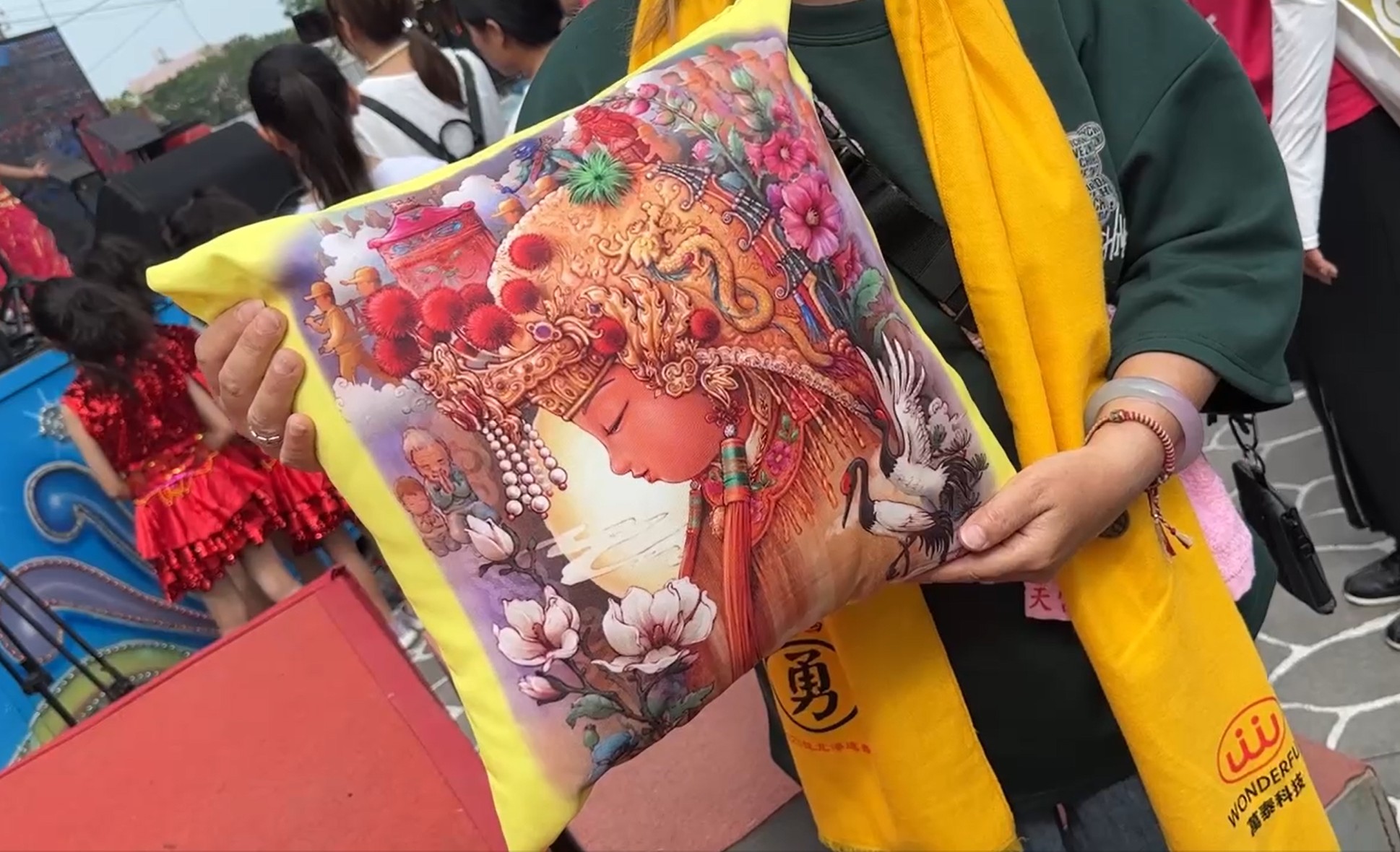 民眾只要於香案前擲筊連得三聖杯,即可獲得白沙屯媽溫暖小抱枕乙個。