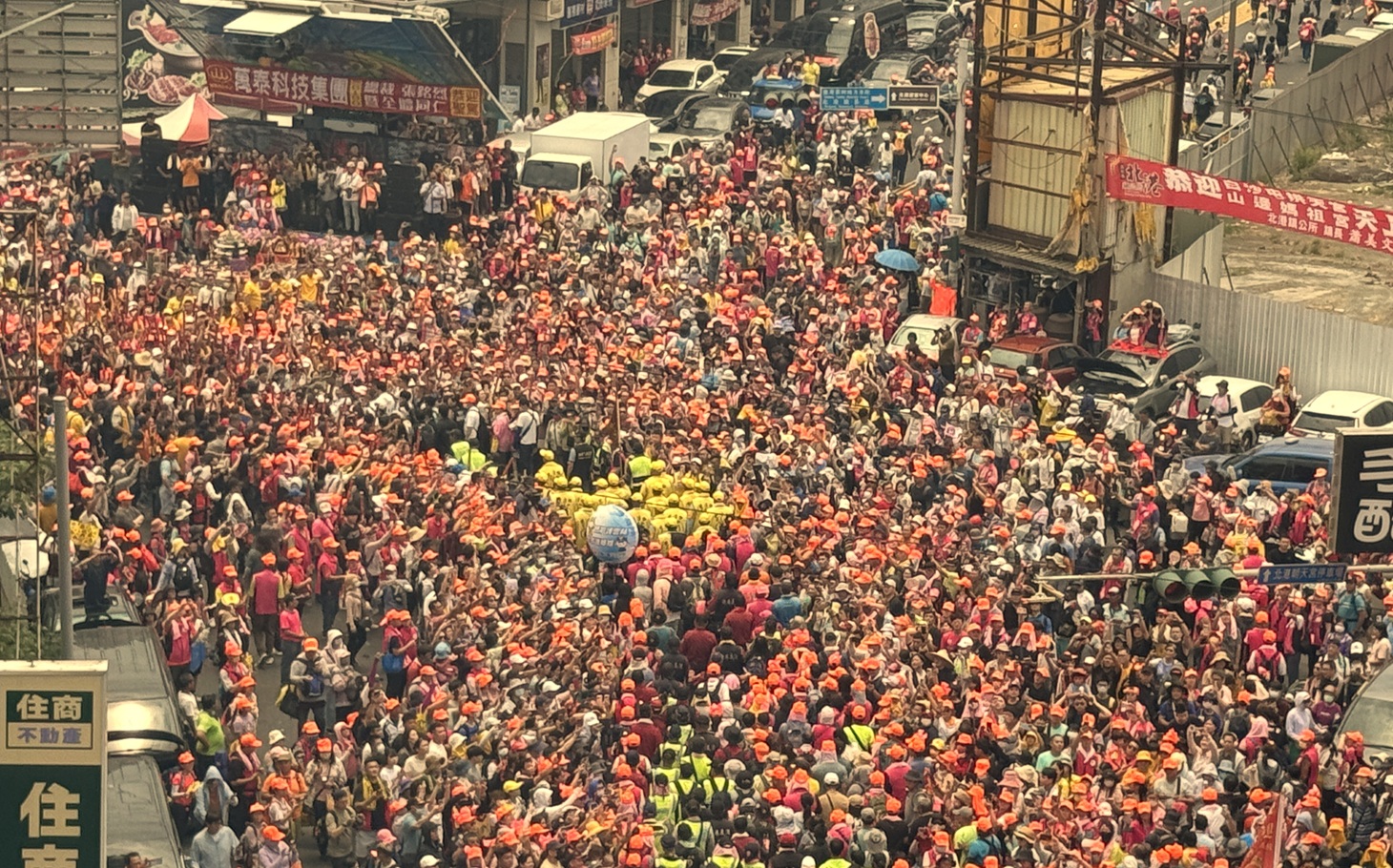 萬泰科技、孟鄉生技、麵包車樂團聯合迎接聖駕,90萬片抗菌口罩守護進香人潮。