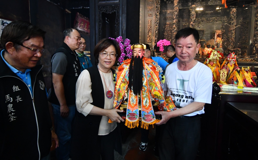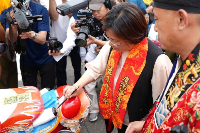 【本報綜合報導】2025年「鹿港慶端陽系列活動-龍王祭」「靈蛇報喜,吉蛇祿來」3日在鹿港龍山寺熱鬧登場。彰化縣長王惠美、彰化縣龍舟委員會主委凃淑媚議員等人恭請「龍王尊神」起駕,隨後由縣內藝陣及表演團隊陪同龍舟隊伍繞境,行經中山路至天后宮,迎請主掌水域平安的「水仙尊王」同行,並於下午前往福鹿溪龍舟賽場舉行「龍王祭典.開光點睛」儀式,正式揭開2025鹿港慶端陽系列活動即將於5月30日至6月1日開始的序幕。