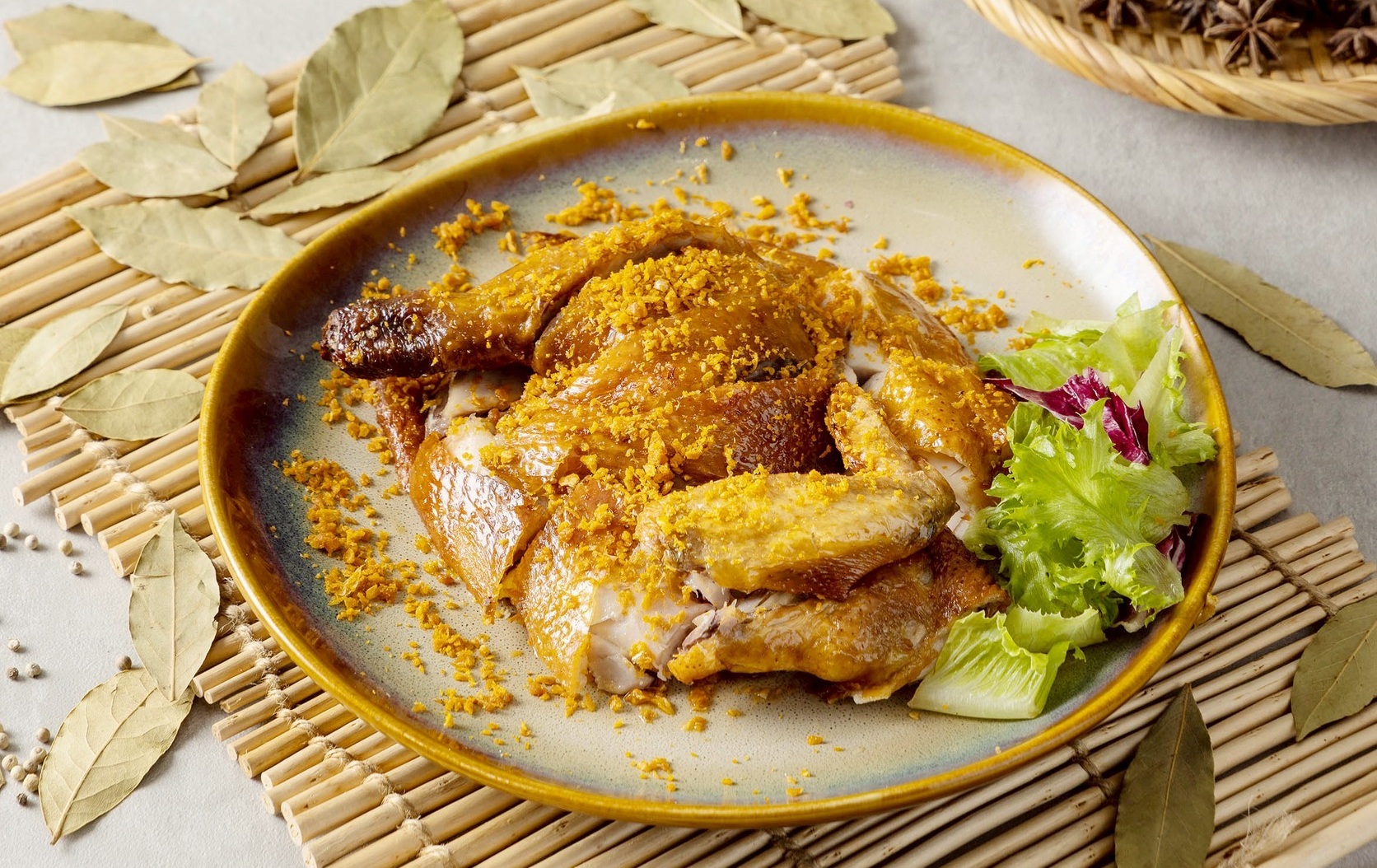 大漠脆皮風沙雞。(圖/新悦花園酒店提供)