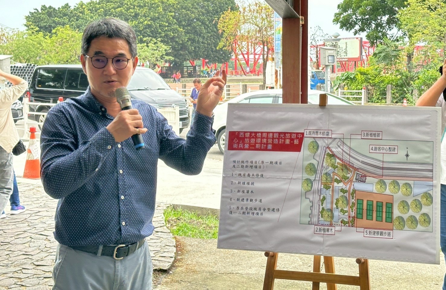 【記者蘇峯毅/雲林報導】有「文化小鎮」美譽的雲林縣西螺鎮,在立法委員劉建國力促下,觀光建設再邁一大步。交通部觀光署署長周永暉近日親赴西螺會勘「西螺大橋周邊觀光旅遊中心」規劃與進度,確定將分三階段推動升級,並加碼補助第二期「藝術兵營」工程。此舉不僅強化西螺的旅遊服務功能,也為當地注入全新觀光能量。