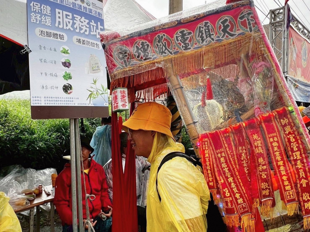活動現場還設置「埔姜防蚊包DIY」體驗區,讓香燈腳親手製作天然防蚊包,作為繞境路上的護身符。現場也同步導覽竹苗海岸丘陵的特有植物生態,像是三葉埔姜、新竹油菊等,不僅有實用的保健價值,更蘊含豐富的生態意涵。