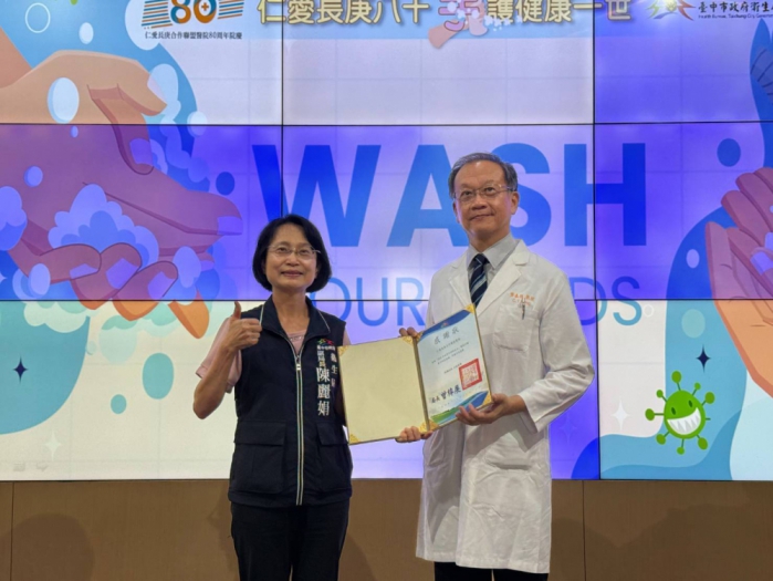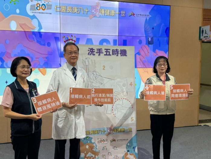 衛生局副局長陳麗娟、衛生福利部疾病管制署中區管制中心副主任柯靜芬及仁愛長庚合作聯盟醫院(大里仁愛醫院)院長龔嘉德、副董事長詹廖明義共同擔任洗手大使,透過一系列有趣活動,宣導正確洗手的步驟及時機,提醒醫護及民眾手部衛生的重要性。