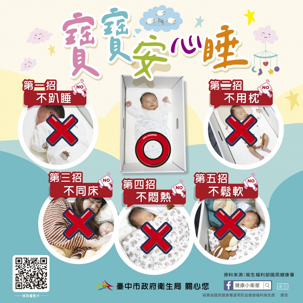 在教材與資源製作方面,衛生局編製「兒童事故傷害防制繪本電子書」、宣導影片、「寶寶安全睡眠環境宣導單張」與懶人包等資源,家長可於全市各衛生所、產後護理機構及產檢醫療院所免費索取單張與懶人包,電子書亦可至衛生局官網(https://gov.tw/sF9)下載使用,另也與教育局合作,將繪本發送至全市公私立幼兒園,將安全觀念扎根於家庭與學習場域。