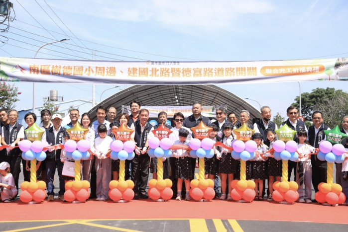 建設局說明,為配合南區樹德非營利幼兒園、樹德國小及其第二期校舍興建需求,市府投入4億5,875萬元推動「南區樹德國小旁道路開闢工程」,新闢道路總長421公尺,並設置2.5至3公尺寬的實體人行道,提供兩校師生及當地居民安全、完善的人行環境,提升學童與行人通行安全。此外,為強化區域排水功能,同步新設總長429公尺的雨水下水道,有效改善周邊排水問題。