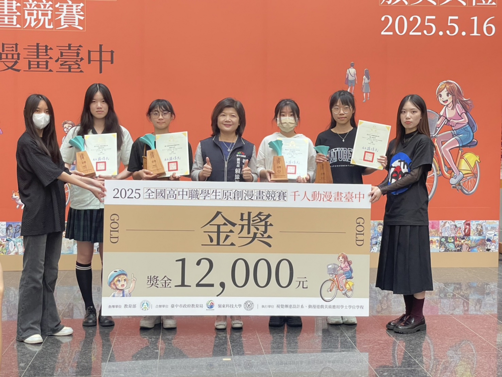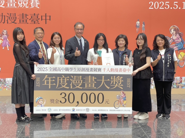 嶺東科技大學指出,2025「千人動漫畫臺中」競賽由專業評審團,從角色設定、繪畫技巧、故事敘事與主題契合度等面向嚴格評選,最終評選出70件優秀作品,總獎金達32萬元。最大獎由嘉義高商廣設科學生呂奕熏獲得,其作品《和千里眼順風耳一起遊台中》以夢境作為敘事框架,創意結合神話角色與地方景點,獲得評審一致肯定。評審團表示,「作品富有想像力,兼具娛樂性與地方導覽功能,極具推廣潛力。」