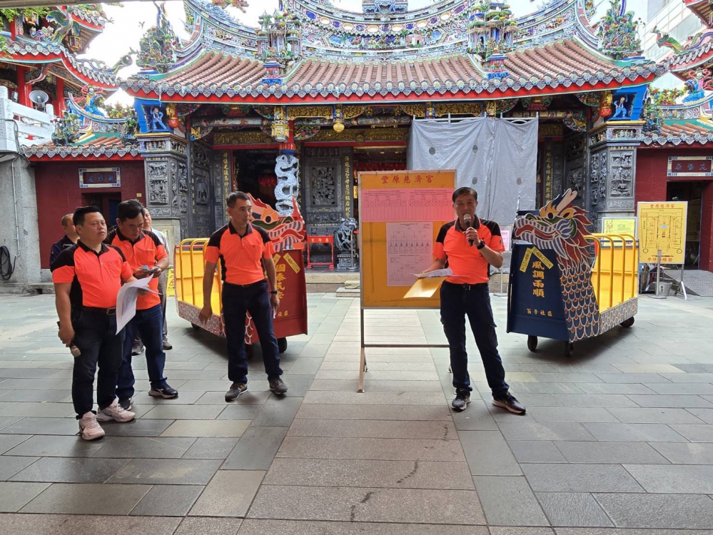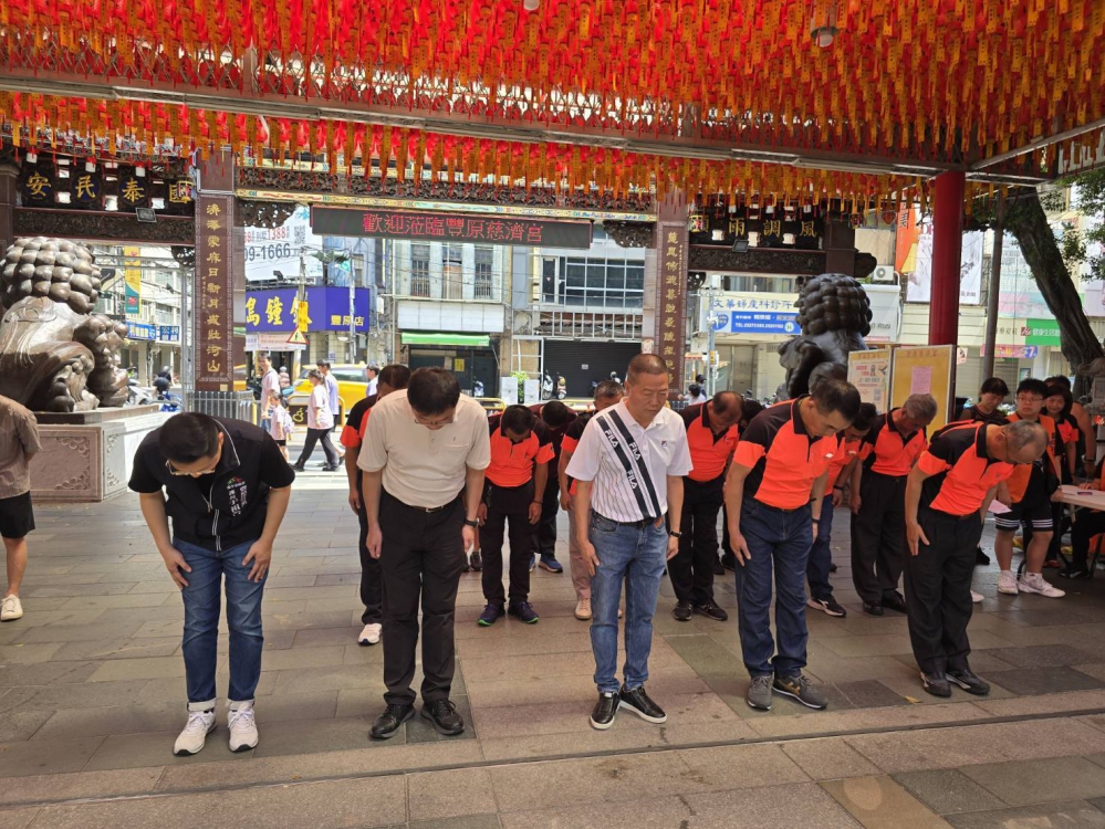2025豐原媽祖盃陸上龍舟趣味競賽領隊會議,18日上午十時在豐原慈濟宮前廣場前舉行,首先由豐原慈濟宮主委陳誌峰帶領所有與會人員向主神天上聖母行禮,感謝媽祖慈悲,並保佑活動進行順利、人員平安健康。
