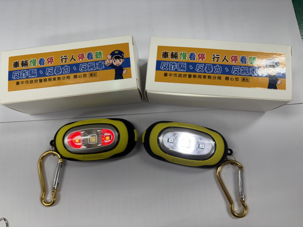 為提升長者於清晨與夜間外出的可見度及交通安全意識,東勢警分局特別購置了「掛包警示燈」。此燈具備三段式燈號(白光、紅光、紅光閃爍),體積輕巧,並配有登山扣,可輕鬆掛於背包、腰間或手提袋上。