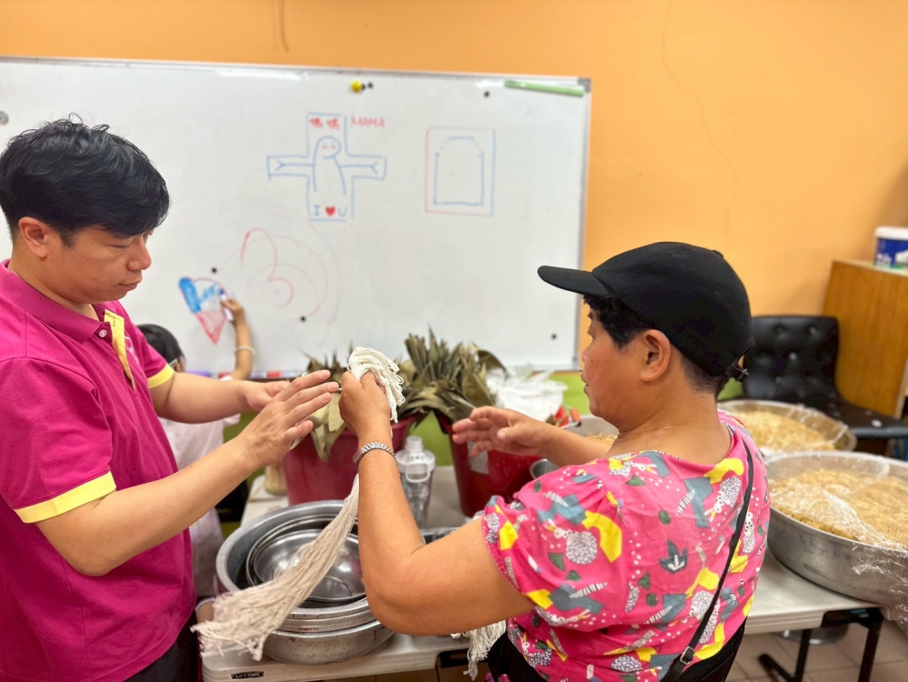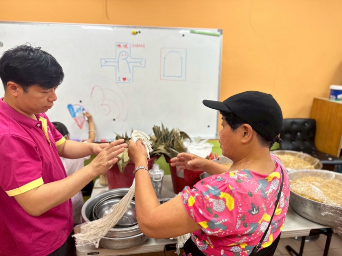 此次參與的30多位親子中,有許多孩子是第一次包粽子,志工們早早準備好糯米、滷肉等材料,並細心指導孩子們與家長一同學習包粽技巧。活動當中,最可貴的是透過親子共學的方式,讓家庭成員在互動中建立更緊密的情感連結,此外,包好的粽子還能分送給較偏遠的甲安埔(大甲、大安、外埔)弱勢家庭,彼此幫助、傳遞祝福!