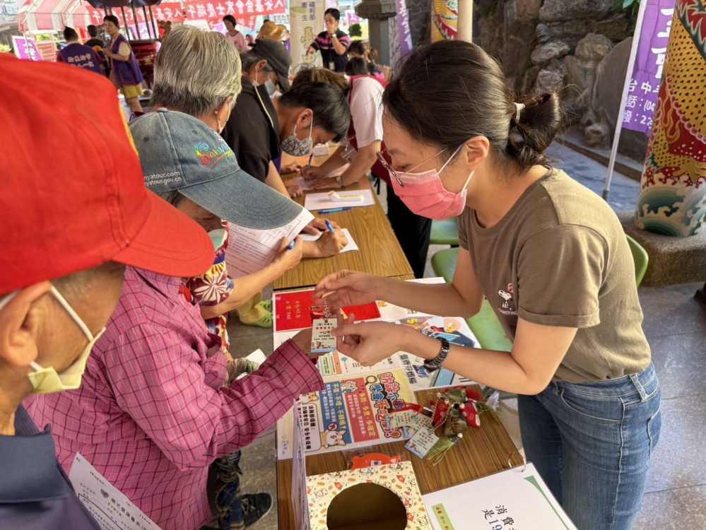 為了宣導民眾正確合宜的送禮法令與常識,龔主任今(22)天率隊前往人安基金會在南區醒修宮舉行的端午節前關懷活動現場設攤,現場準備包著廉能宣導法條題目的「廉能粽香包」,提供參加現場活動的民眾可自行選擇香包後,當場回答廉能法條的規範,答對了就可以把香包帶回家!民眾對於「廉能粽香包」相當感興趣,有秩序地排隊答題領香包,現場反應熱絡。