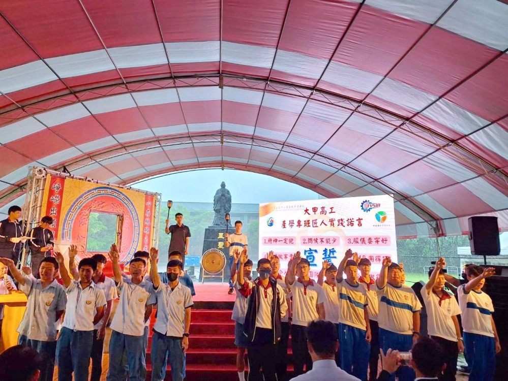 【記者陳榮昌大甲報導】台中市立大甲高工24日舉行「113學年度契合式人才培育產學合作專班謝師傳承典禮暨1+3+4專班拜師典禮」,結合創校88週年校慶,邀請潭雅神工業廠商協進會、甲安埔廠商協進會、國立勤益科技大學、國立聯合大學、20家優質企業、7所合作國中師長與家長共襄盛舉。