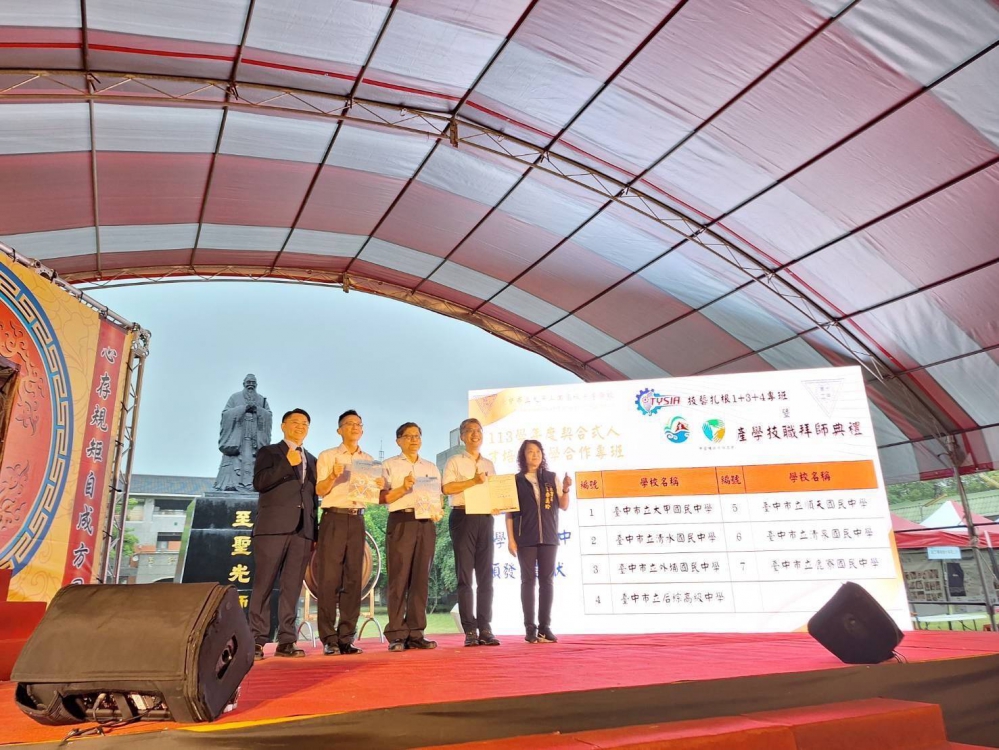 教育局指出,台中市自107年起全國首創由教育局全額補助開設「契合式人才培育產學合作專班」,由市立技術型高中與在地產業、技專校院攜手合作,透過職場參觀與高三實作訓練,強化學生實務技能,並於畢業後銜接技專院校,兼顧學業與就業需求。截至113學年度,已在大甲高工等5所學校開設7個專班,成效卓著。