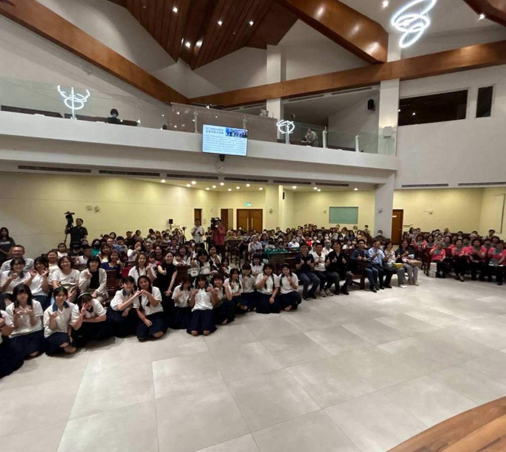 嘉義長庚醫院「勇士合唱團」與宏仁中學合唱團聯手,在嘉義市南門長老教會舉辦夏季成果音樂會。(圖/嘉義長庚醫院提供)2021年,她更與合唱團登上總統府音樂會舞台,留下難忘回憶。如今她升格當阿嬤,感謝生命的重生,並鼓勵病友「癌症不是絕症,早期發現、積極治療,就能穩定病情,讓我們一起努力加油。」。