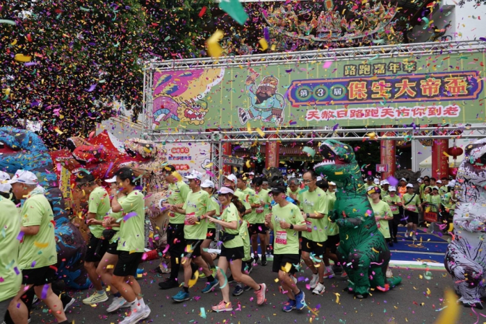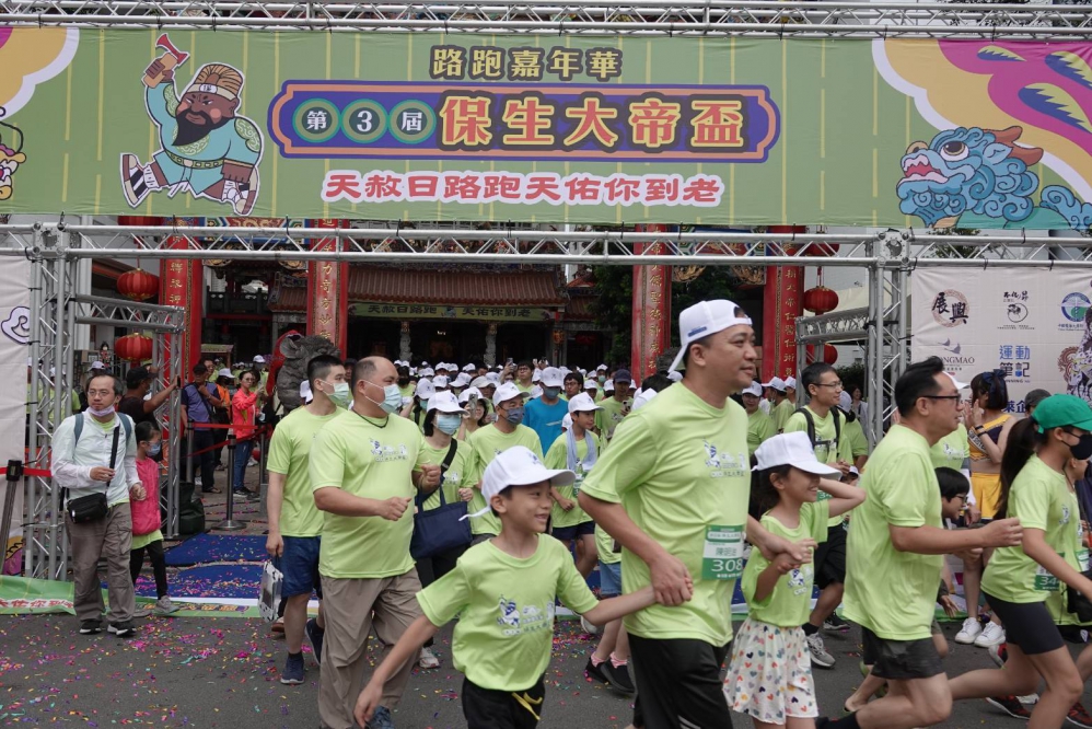此外,今年活動最大亮點之一,就是號召「恐龍」們一起路跑,只要身著恐龍裝參加,即可獲得限量、經保生大帝加持的祈福金幣一枚,吸引許多親子跑友踴躍響應;另賽道終點設置象徵平安護祐的「天赦門」,迎接每位完賽者,為路跑畫下充滿祝福的句點。