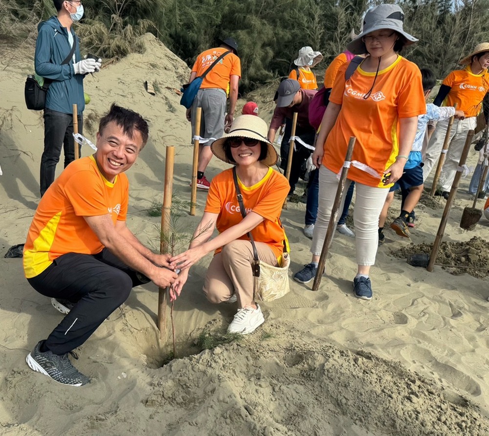 在好美里沙灘陽光與海風交織下,參與者手持夾子、麻布袋,沿著沙灘彎腰撿拾廢棄塑膠、漁網與瓶罐,總計約200公斤,讓海岸線重現潔淨風貌;隨後在防風林地種下1,000株耐風、耐旱的木麻黃樹苗,為好美里沿海地區築起逾200公尺的綠色屏障。
