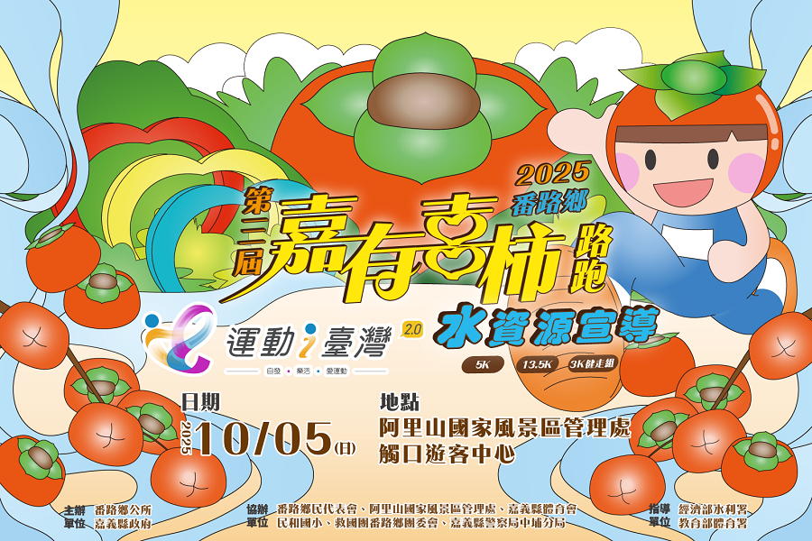 一起用腳步寫下秋日風景,呼吸阿里山的清新空氣、品味番路的柿與茶,跑出健康、跑出活力、跑進大自然的懷抱。嘉有喜柿路跑不只是比賽,更是一場屬於你與生活的慶典,不論是熱血挑戰者,還是熱愛健康生活的你,這場兼具美景與風味的路跑活動絕對值得參加!