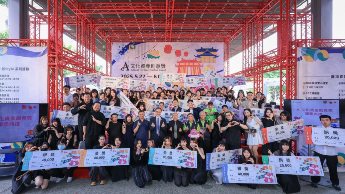 「2025年A+文化資產創意獎」於禾一文化傳承舞團的精采表演中揭幕,傳統八家將融合現代酷炫街舞,展現出A+新舊交融的精神。本次徵件項目計七大類別,各類別之金獎可獨得8萬元,銀獎和銅獎各獲得4萬元和2萬元獎金,總獎金達196萬元。總徵件數達2,549件,為歷屆最高,計79所大專校院系所參與競賽,由35位跨領域專家擔任評審委員,經初審後遴選出313件各具巧思的入圍作品,今日評選出七大類別金銀銅獎得主,作品就各類文資元素進行多重詮釋,深入淺出地展示出文化資產活化創意的構思。