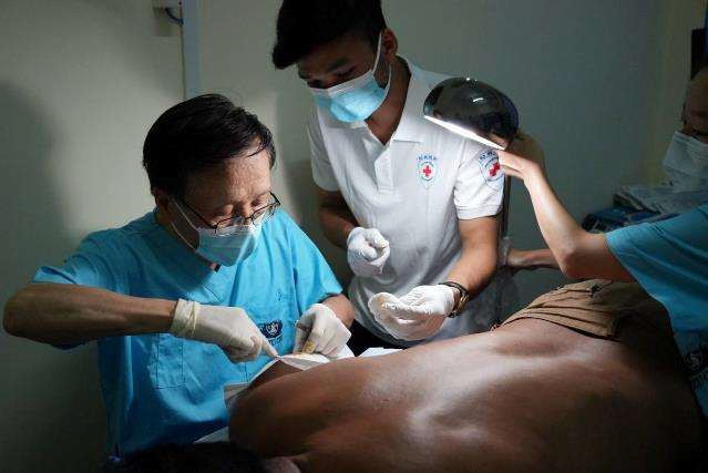 臺灣團隊奔波飛往2290公里外的柬埔寨金邊機場,再兼程趕往近100公里遠的茶膠省,簡單午餐後,下午一點就分別就位執行醫療任務。簡院長隨即進入開刀房協助緊急處理,傷口出血不止的病患。他表示,這時候真的覺得自己能夠幫上忙,特別有成就感。簡院長也指出,每一科的醫生都不可或缺,每個人都在自己崗位努力付出,才能讓義診順利進行。他感恩所有願意用心、用力投入這場義診的夥伴,這些國家團隊的努力與付出,都是值得學習的楷模與典範。