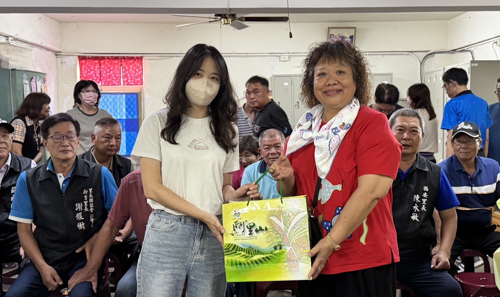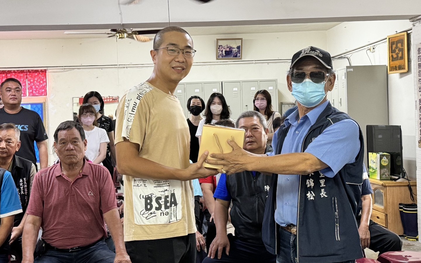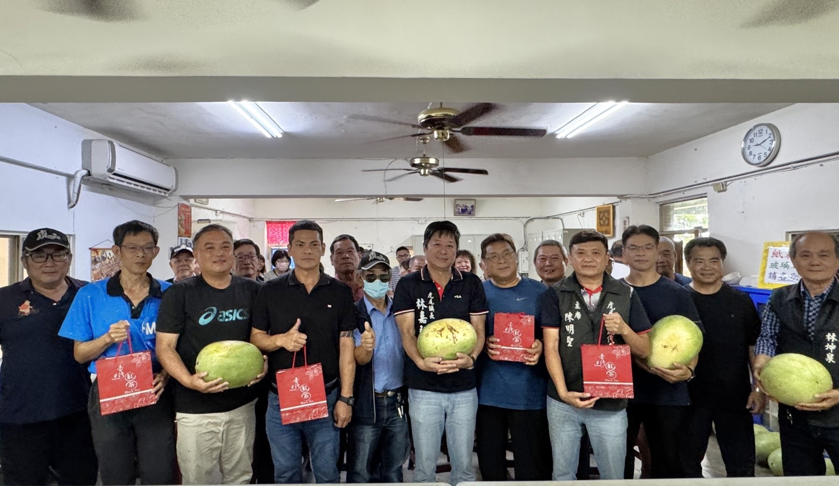 慰問行動由鎮民代表會主席陳明聖、里長聯誼會長林坤泉及多位里長一同參與,現場致贈飲料與西瓜,表達對隊員們的敬意與鼓勵。(圖/記者蘇峯毅攝)