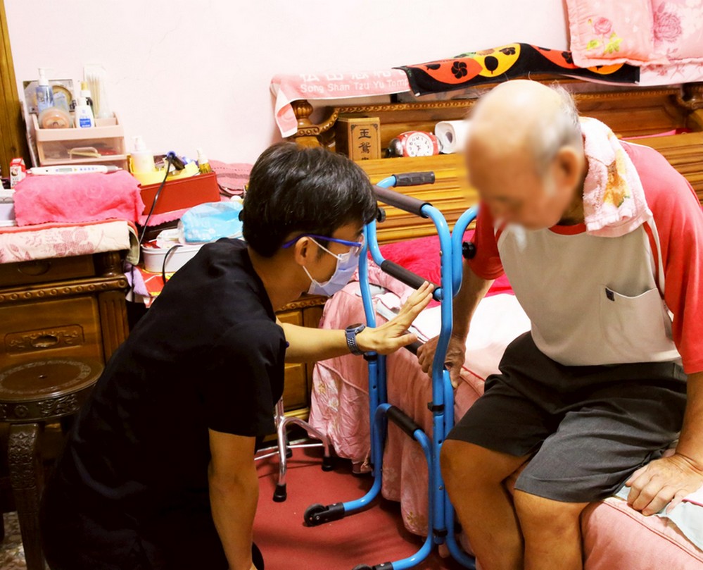 大林慈濟醫院中醫部家庭醫學科鄭竹晏主任,走入偏遠鄉村、投入居家醫療服務。(圖/大林慈濟醫院提供)面對這典型的「老老照顧」困境,鄭醫師不僅細心地診察病情,更與照顧者充分溝通、衛教,提醒應定時翻身,避免久臥不動,以延緩病情惡化。在得知詹阿伯起床困難,鄭主任到「慈濟環保輔具平台」申請輔具,並親自到慈濟嘉義園區載回一個「床邊扶手」,親送至詹家,現場教導詹阿伯如何施力及正確使用,預防跌倒風險。