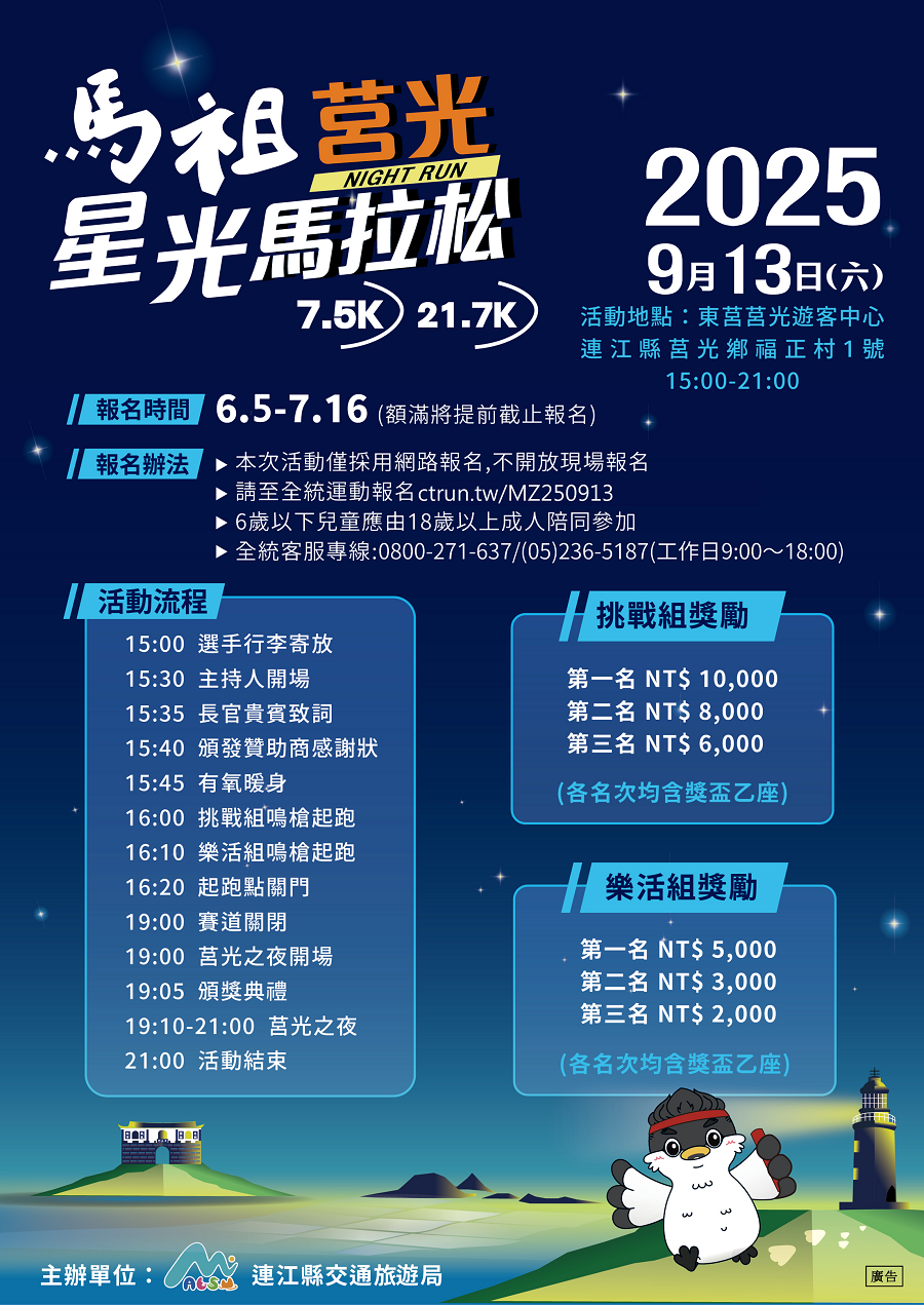 賽事名稱:2025 馬祖莒光定向星光馬拉松