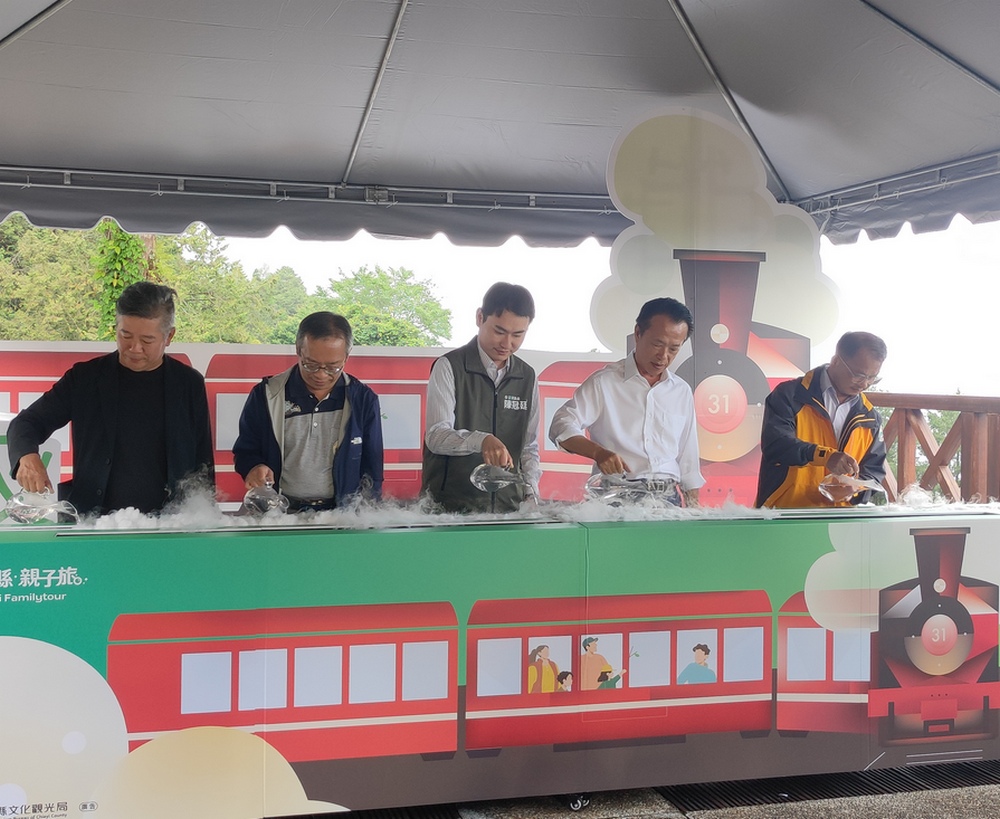 (記者任芳葵嘉義報導)嘉義縣文化觀光局推出暑假限定蒸汽火車頭體驗行程,特地與林鐵處及雄獅旅遊合作,使用百年蒸汽火車頭搭配福森號、栩悅號及檜木列車的車廂,帶給遊客更豐富的體驗價值,6日在阿里山森林遊樂區隆重宣傳,由縣長翁章梁、立委陳冠廷、林業保育署嘉義分署長李定忠、林鐵及文資處副處長周恆凱等多位貴賓一同為活動揭幕,行程僅販售14趟次,邀請享受「森呼吸 嘉時光」。